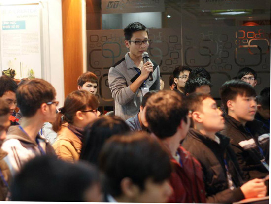 Tối 12/3/2014, gần 200 bạn trẻ, đại diện doanh nghiệp đã tham gia chương trình Tọa đàm lập trình di động do Trung tâm Công nghệ và Nội dung số VTC - VTC Academy tổ chức với chủ đề “Để $$$ mọc lên từ bàn phím như Flappy Bird, dễ hay khó?”.