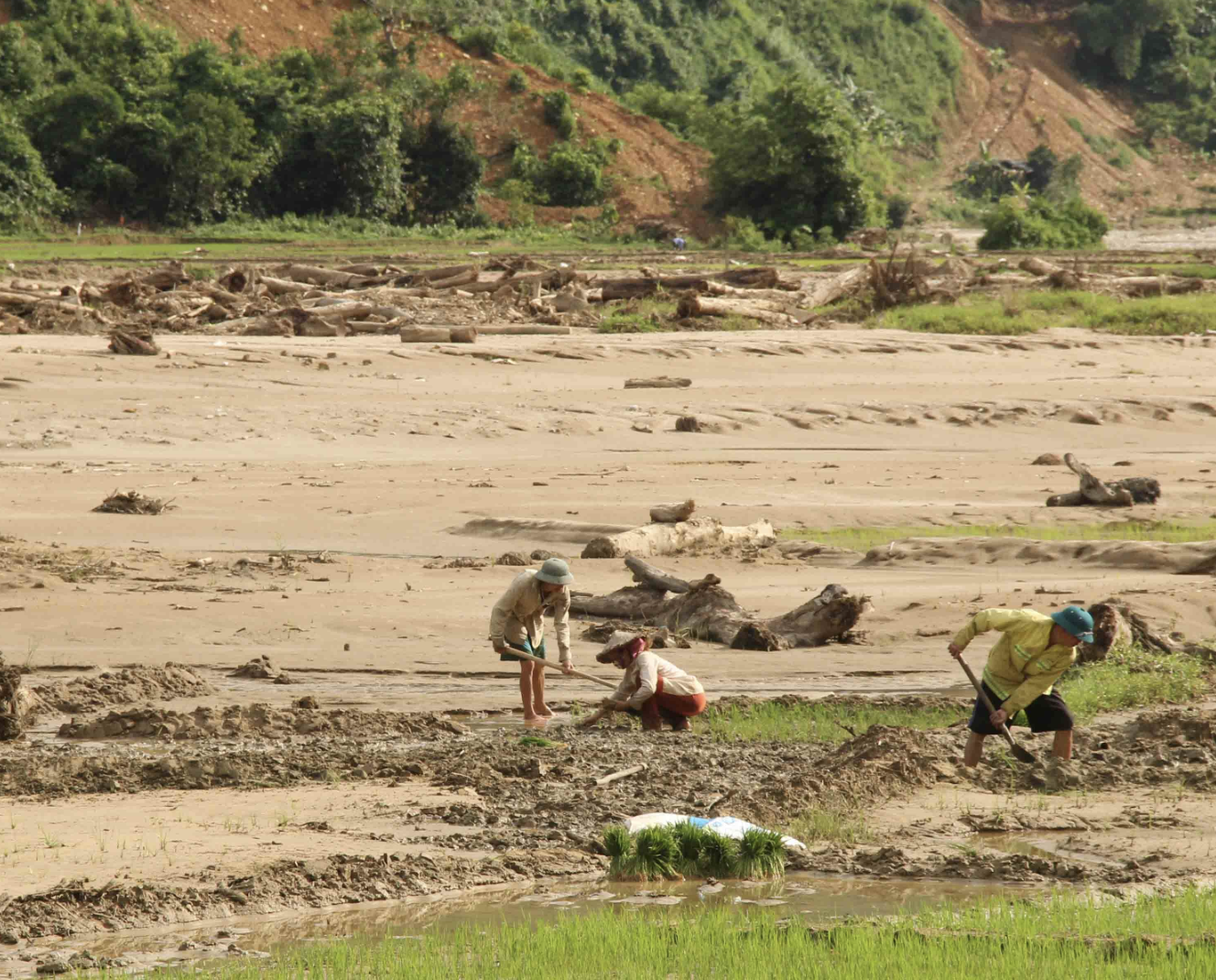 Phó Chủ tịch UBND tỉnh Hà Trọng Hải cùng các đồng chí trong Đoàn công tác đã đi kiểm tra tại bản Nà Hừ, xã Bum Nưa, huyện Mường Tè, nơi đã có trận lũ kinh hoàng xảy ra vào những ngày cuối tháng 6 vừa qua.
