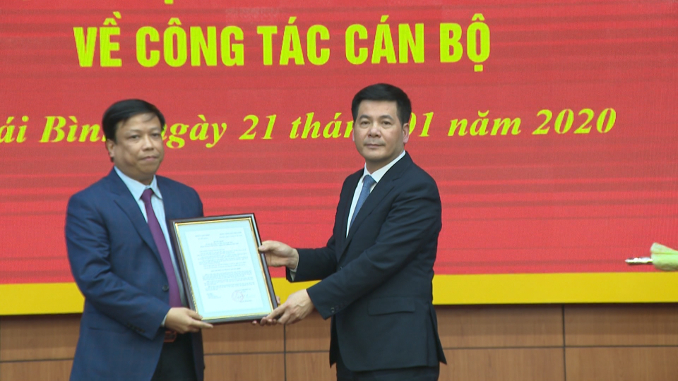Bí thư Tỉnh ủy Thái Bình Nguyễn Hồng Diên trao quyết định cho ông Nguyễn Hoài Đức. |