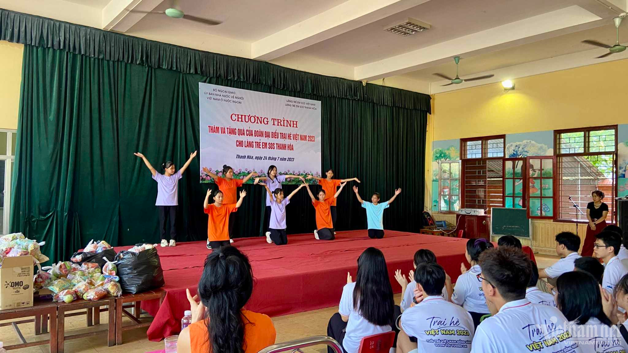 Sáng 24/7, đoàn đại biểu thanh, thiếu niên kiều bào tham gia Trại hè Việt Nam 2023 đã đến thăm, tặng quà và giao lưu với các em nhỏ ở Làng trẻ em SOS Thanh Hóa. Chương trình có sự phối hợp tổ chức giữa Ủy ban về người Việt Nam ở nước ngoài (Bộ Ngoại giao) và Sở Lao động, Thương binh và Xã hội tỉnh Thanh Hóa.