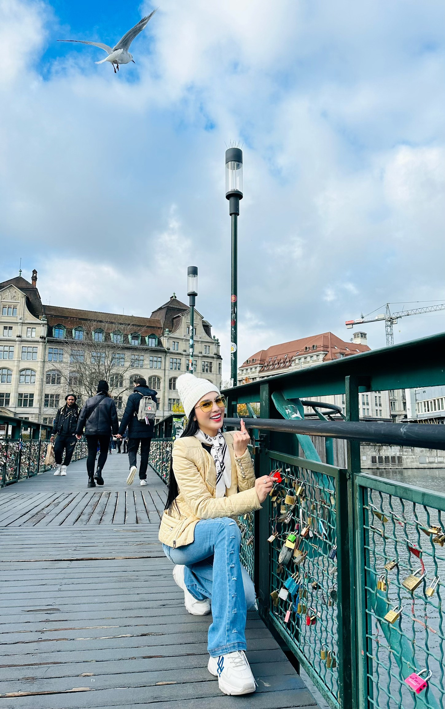 Kim Huyền Sâm chụp ảnh tại Thụy Sĩ.Thuỵ Sĩ là đất nước nổi tiếng giàu có và xinh đẹp. Khi đến đây MC Kim Huyền Sâm cảm thấy mọi thứ thật tuyệt vời - một đất nước đáng trải nghiệm, đáng sống. Đặc biệt cô cảm thấy rất thích thú khi lên ngắm băng tuyết Titlis.Dù đã làm mẹ của 2 con nhưng Kim Huyền Sâm vẫn giữ được sắc vóc đáng ngưỡng mộ.Điện Invalides, Pháp là một quần thể kiến trúc nằm ở quận 7, Paris. Nơi đây được vua Louis XIV cho xây dựng vào cuối thế kỷ 17 và là nơi đặt lăng mộ của Napoleon I - hoàng đế nổi tiếng nước Pháp. Điện Invalides là một trong những tuyệt tác kiến trúc nổi tiếng bậc nhất của thành phố.Đến Milan, Italia, cô hào hứng tạo dáng tại nhà thờ Duomo MiLan - một trong những thánh đường tráng lệ nguy nga. Duomo Milan được xây dựng từ năm 1386 ở Lombardia, miền bắc Italia. Công trình kiến trúc ban đầu được thiết kế với 3 gian chính, sau đó được mở rộng ra thành 5 gian. Mặt tiền của nhà thờ được thiết kế thành những cạnh nhỏ, chồng lên nhau như một tấm mạng nhện mỏng manh, mềm mại được xây dựng trong vòng 5 thế kỷ.Bức ảnh Huyền Sâm chụp tại Italia.Kim Huyền Sâm tại cây cầu tình yêu (Thụy Sĩ) và hồ Luzerne thơ mộng.