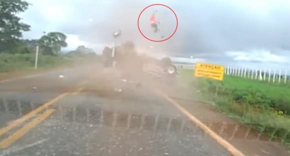 Theo những hình ảnh do camera hành trình của một chiếc xe hơi đang di chuyển trên đường ghi được, chiếc xe tải mất kiểm soát lộn nhào liên tục nhiều vòng từ phía bên này sang bên kia, làm bắn tung các mảnh vỡ khắp đường. Đúng lúc đó, một người đàn ông bị bắn văng ra khỏi cửa sổ buồng lái, lộn nhào khoảng 2 vòng trên không trước khi ngã đập người xuống đường.