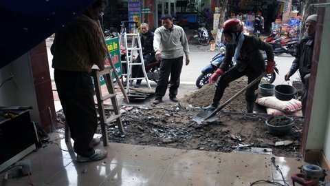 Hai vợ chồng ông Lân đang khẩn trương tiến hành dọn dẹp, sửa chữa căn nhà.