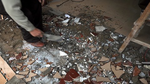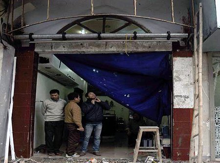 | Gia đình dọn dẹp, sửa chữa căn nhà bị hư hỏng sau vụ nổ |
