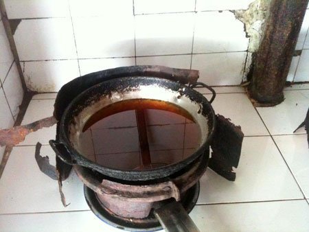 | Những chảo dầu chiên bánh này còn được tận dụng từ ngày này qua ngày khác để... tiết kiệm chi phí. |