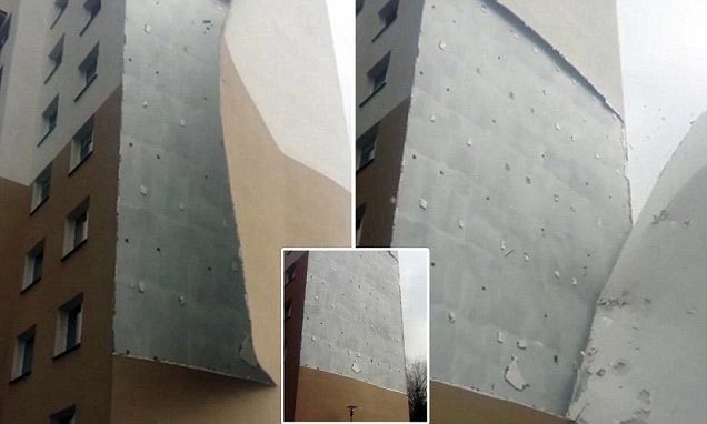 Các cơn gió mạnh ở Ba Lan không xô đổ nhà, nhưng chúng đã "xé toạc" một mảng lớn bên hông của một tòa cao ốc ở thủ đô Warsaw.