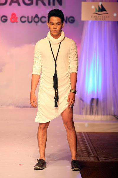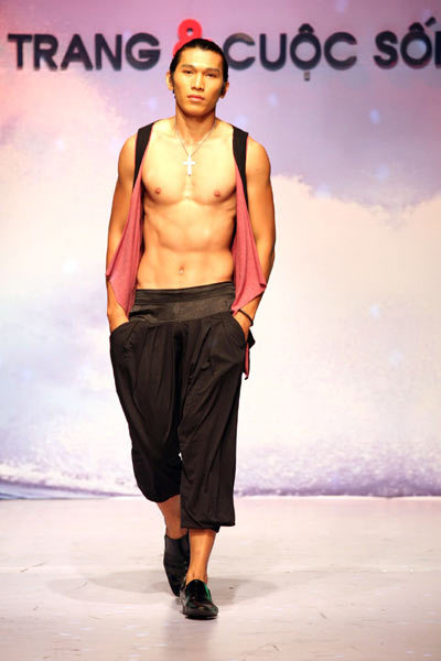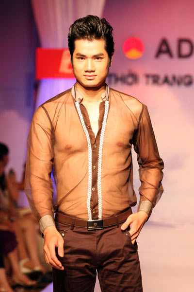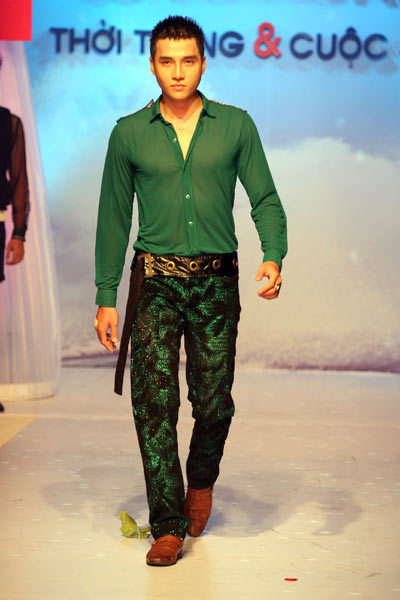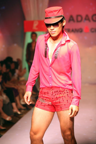 Tuy nhiên, những bộ cánh dành cho nam giới sử dụng chất liệu vải và màu sắc diêm dúa, phản cảm đã khiến người xem không khỏi lắc đầu ngán ngẩm cho cái gọi là “tính dự báo xu hướng thời trang” mà những người tổ chức quảng bá.