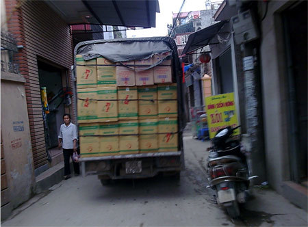 Hàng ngày, La Phù luôn nườm nượp xe tải về chở hàng phân phối đi các tỉnh