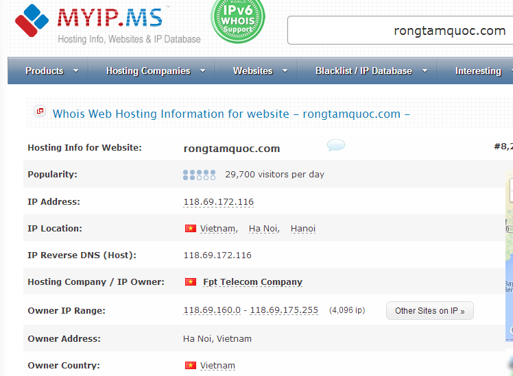 Cũng bằng cách kiểm tra tương tự, các game của Lemon Game như Rồng Tam Quốc, Trảm Tiên, cũng cho ra dải IP là 118.69.172.116, có liên quan đến Công ty FPT Telecom. Và thực tế khi kiểm tra tại trang vnnic.vn ở trên, cho thấy nó thuộc vùng 118.69.168.0 - 118.69.175.255 /21, được cấp cho công ty cổ phần Viễn thông FPT.