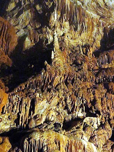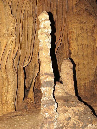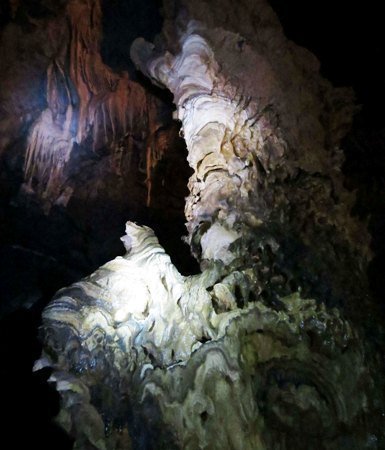 Phía trái của cột nhũ đổi màu là một rừng thạch nhũ