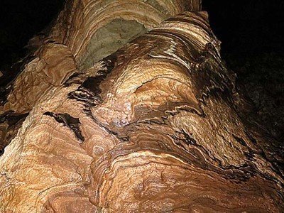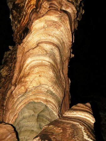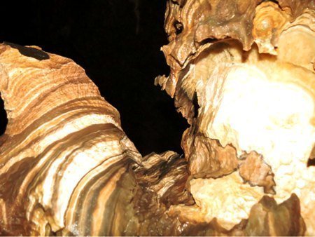 chiếu đèn một lúc rồi lại rọi vào, thạch nhũ sẽ hiện các màu vân như vân gỗ, rất