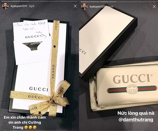 Hoa hậu Kỳ Duyên vừa mới tổ chức tiệc đón sinh nhật tuổi 21 bên bạn bè thân thiết. Cô chia sẻ trên Instagram món quà sinh nhật là bức ảnh có gắn tên @DamThuTrang cùng lời cảm ơn của mình. Trên tấm thiệp có dòng chữ "Chúc em sinh nhật vui vẻ" và ký tên "Anh chị Cường - Trang". Tên đầy đủ là Cường Đô La và Đàm Thu Trang. Điều này chứng minh cặp đôi đang yêu nhau sau một thời gian dài tìm hiểu.