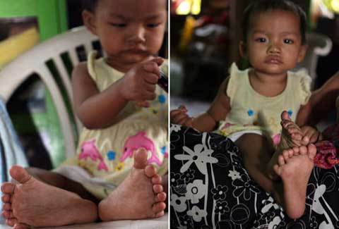 Le Yati Min mới 16 tháng tuổi. Mẹ của em cho biết em không hề gặp khó khăn nào dù có tới 12 ngón tay và 14 ngón chân. Thậm chí, điều đặc biệt này còn giúp em cầm nắm chặt hơn bình thường.