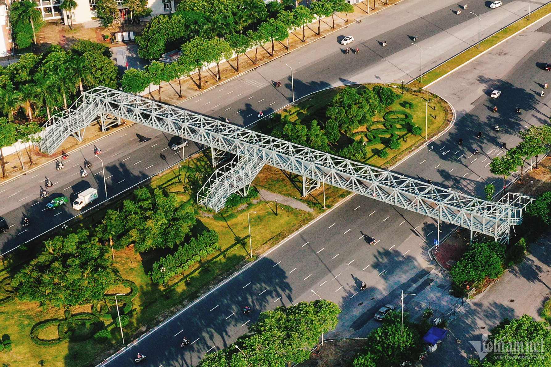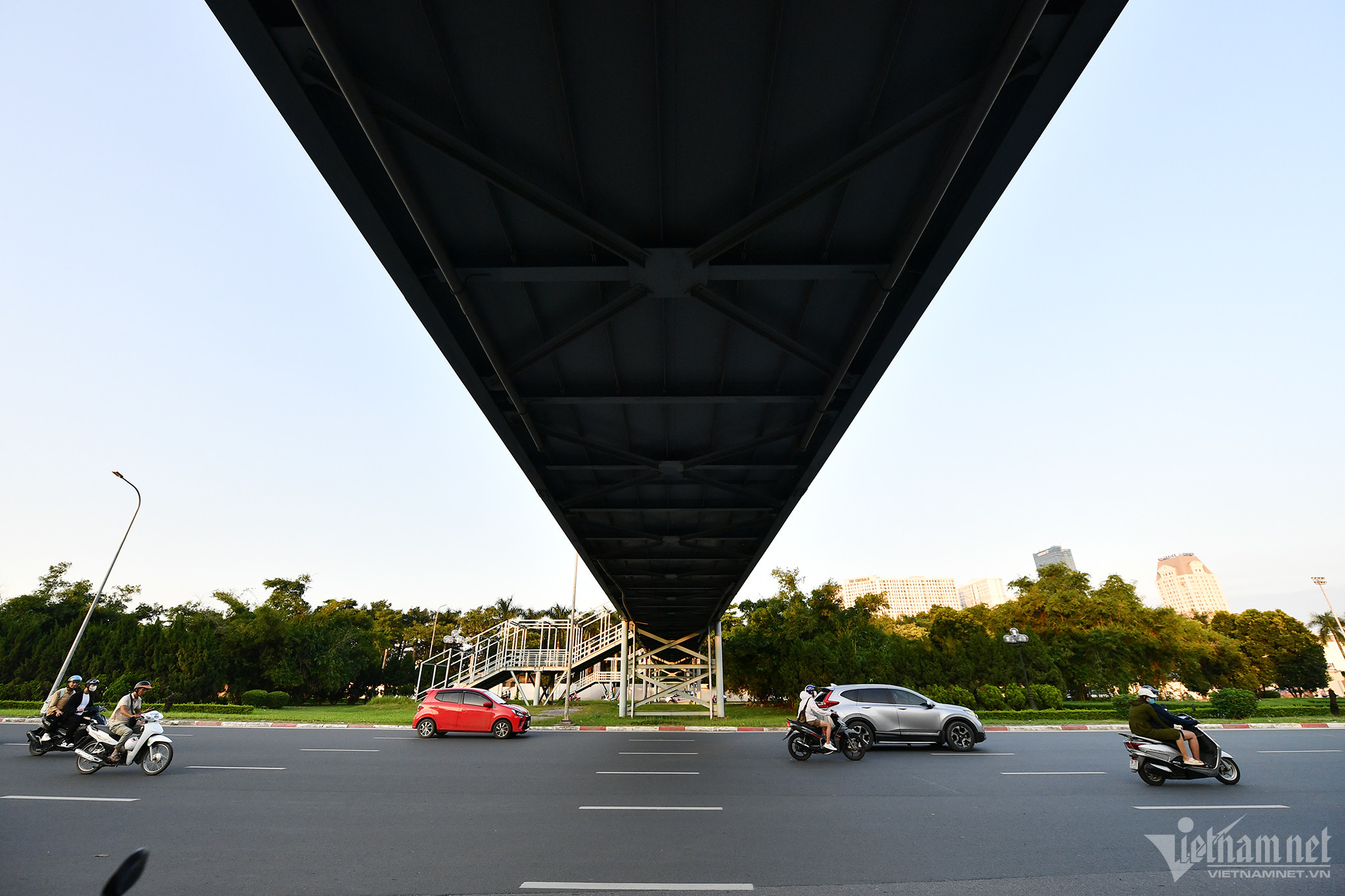 Cây cầu vượt bắc ngang đường Lê Quang Đạo được thiết kế với những khung thép chắc chắn, trọng tải lớn, trông như một cây cầu vượt sông thu nhỏ.