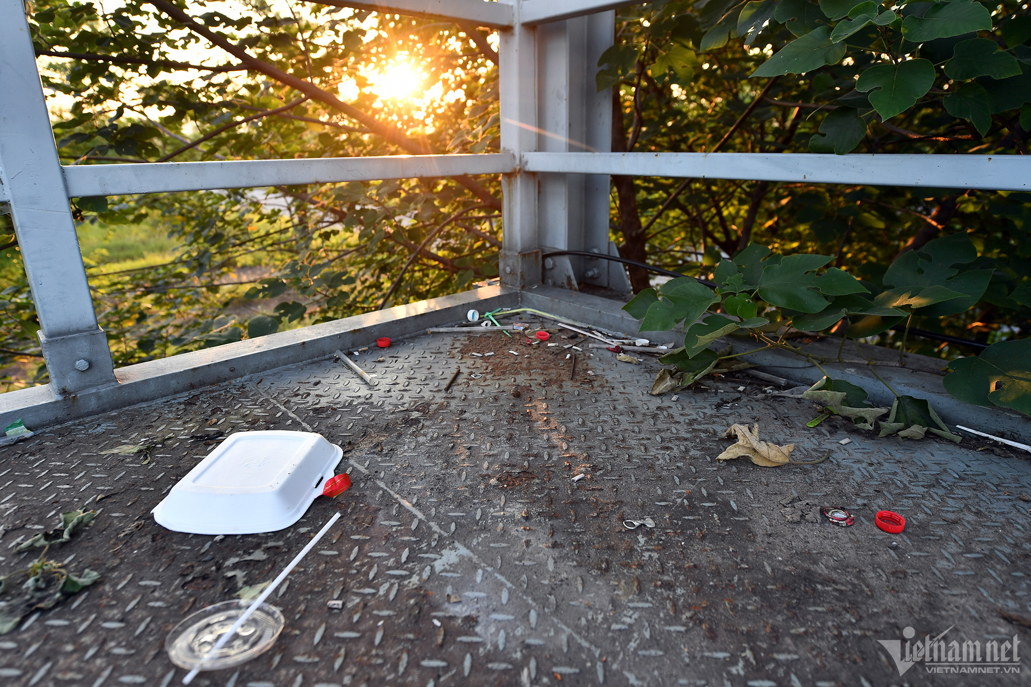 Hiện, cây cầu rất nhếch nhác, rác thải, không có dấu hiệu công nhân môi trường quét dọn hàng ngày. Vật dụng đựng đồ ăn được những người đi hóng mát vào ban đêm xả xung quanh.