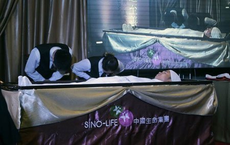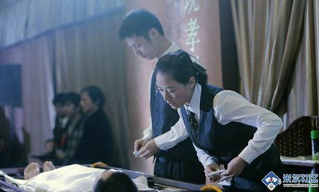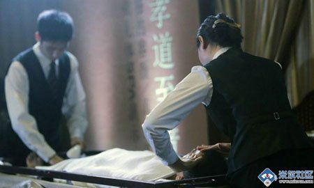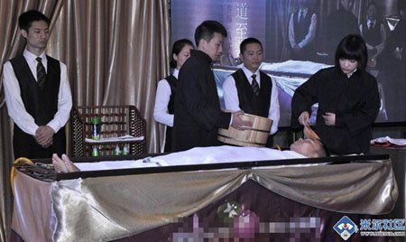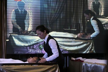 Ngày 20/11 tại buổi triễn lãm cung cấp thiết bị cho tang lễ ở Vũ Hán (Trung Quốc), một công ty đã gây sửng sốt khi giới thiệu dịch vụ hoàn toàn mới: massage cho người chết. Nhà cung cấp cho biết, cách làm này sẽ giúp những người đã qua đời có một cơ thể sạch sẽ và thoải mái để bước sang thế giới bên kia.