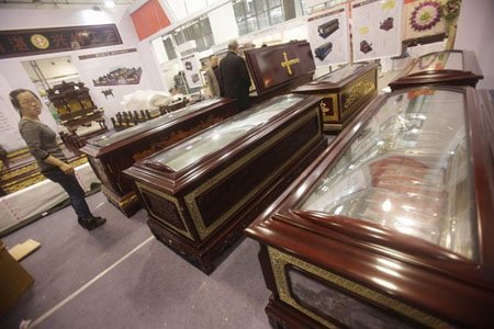 Những chiếc quan tài cao cấp cũng được trưng bày trong cuộc triển lãm.
