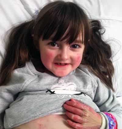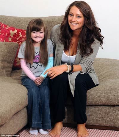 Hollie, ở Anh, năm nay 7 tuổi. Em sinh ra đã bị chứng epidermolysis bullosa (EB), còn được biết đến là căn bệnh cánh bướm. Chỉ một vết cào nhẹ nhất có thể khiến em bị thương hết sức đau đớn. Thậm chí sự chà xát từ quần áo cũng khiến da bỏng giộp và gây sẹo.