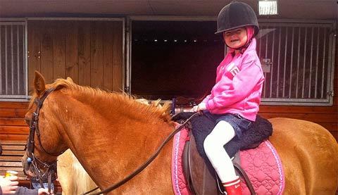 Hollie đi học, thích trượt patanh và gần đây còn thực hiện ước mơ cưỡi ngựa của mình.