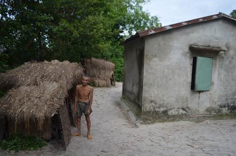 Cạnh bên căn nhà xây là 3 căn lều bằng rơm rạ giống như những cái tổ chim. Ba căn lều tách biệt nhau do lão tự tay dựng lấy. Căn lớn nhất, chừng 3m2 lão dùng làm bếp nấu nướng và chỗ ăn uống. Căn lều thứ 2, lão đặt chiếc giường tre nhỏ để ngủ và căn nhỏ nhất, được dùng làm nhà kho chứa các vật dụng sinh hoạt hàng ngày của lão.