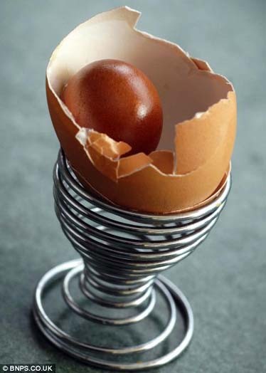 | Bên trong quả trứng to có một quá trứng nhỏ hoàn hảo. |