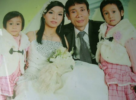 | Vợ chồng anh Xuân và chị Thà cùng hai con chụp hình kỷ niệm 1 năm ngày cưới |