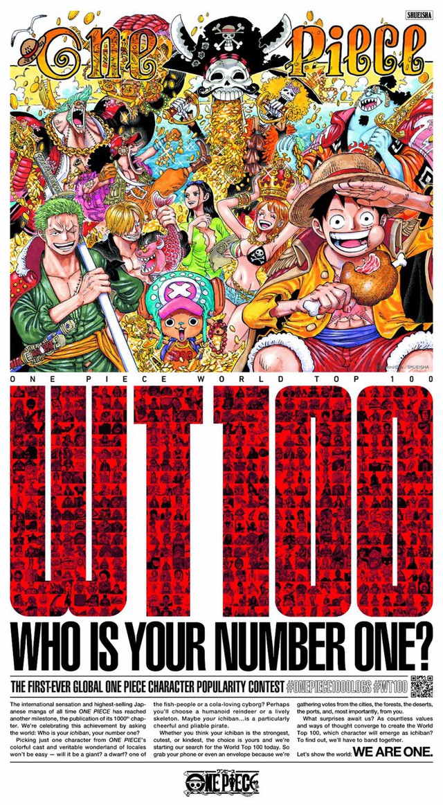 "CHÚNG TÔI LÀ MỘT" là khẩu hiệu cho sức hấp dẫn và các fan hâm mộ của One Piece trên toàn cầu, tất cả đều đoàn kết dưới ngọn cờ của One Piece. Sự nổi tiếng lâu dài của bộ truyện này được thể hiện qua việc One Piece đang nắm giữ kỷ lục Guinness thế giới về "Số bản sao được xuất bản nhiều nhất cho cùng một bộ truyện tranh của một tác giả trong lịch sử."