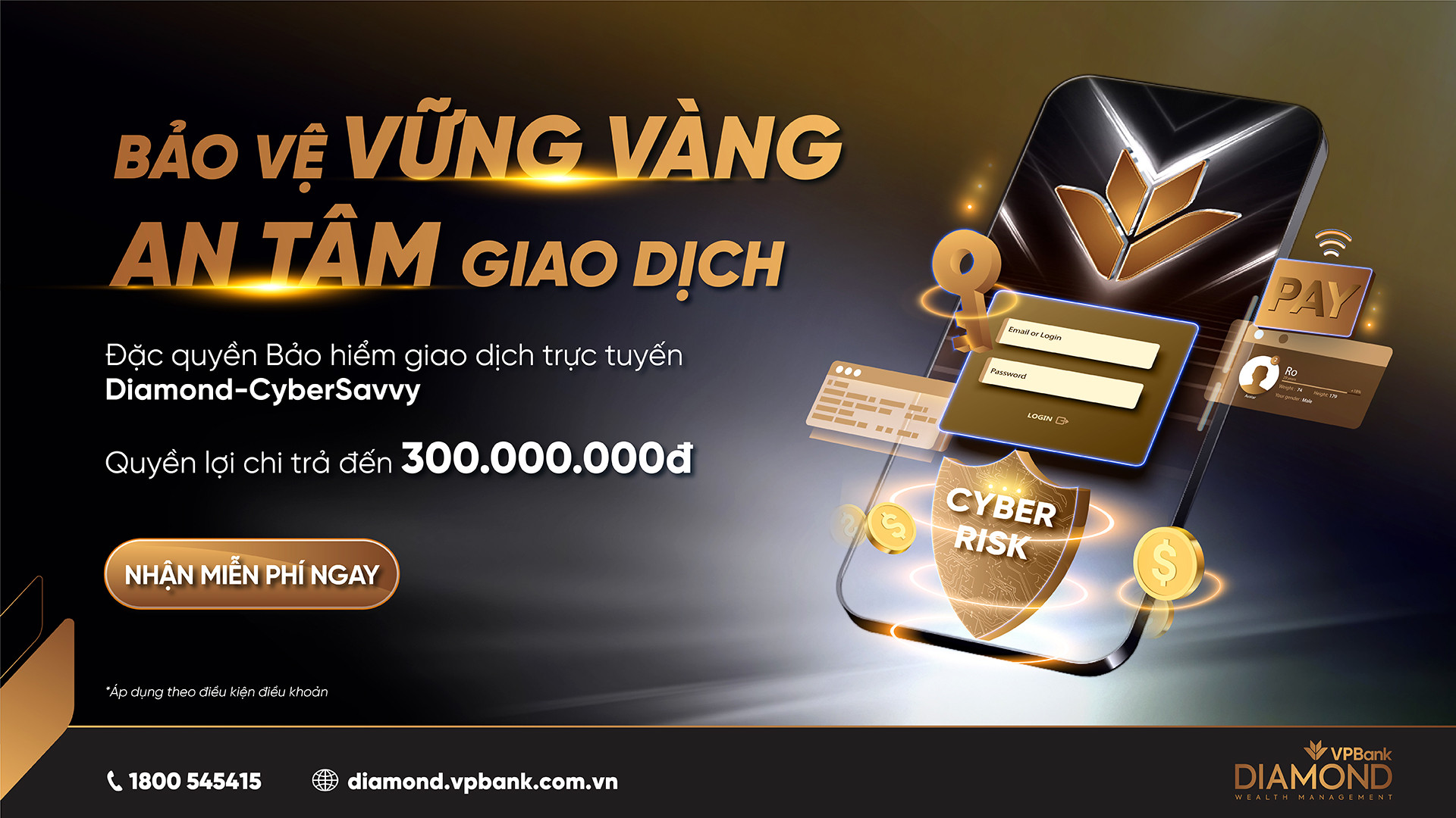 Nắm bắt được nhu cầu bức thiết đó, VPBank triển khai chương trình tặng miễn phí bảo hiểm giao dịch trực tuyến CyberSavvy - hay còn gọi là bảo hiểm an ninh mạng cá nhân dành riêng cho khách hàng là Hội viên Dịch vụ khách hàng ưu tiên VPBank Diamond. Theo đó, khách hàng sở hữu đồng thời tài khoản thanh toán, thẻ thanh toán và ứng dụng ngân hàng số VPBank NEO sẽ được tặng gói bảo hiểm CyberSavvy với hạn mức chi trả đến 300 triệu đồng, bảo vệ trong 6 tháng.