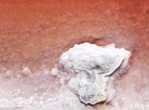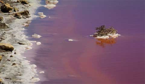 Lượng muối cao khiến nước hồ chuyển từ xanh sang đỏ