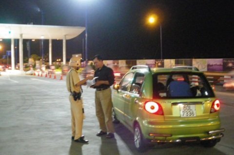 CSGT phạt người vi phạm giao thông khi đi qua hầm Thủ Thiêm - Ảnh: Nguyên Mi - Thanh Niên |