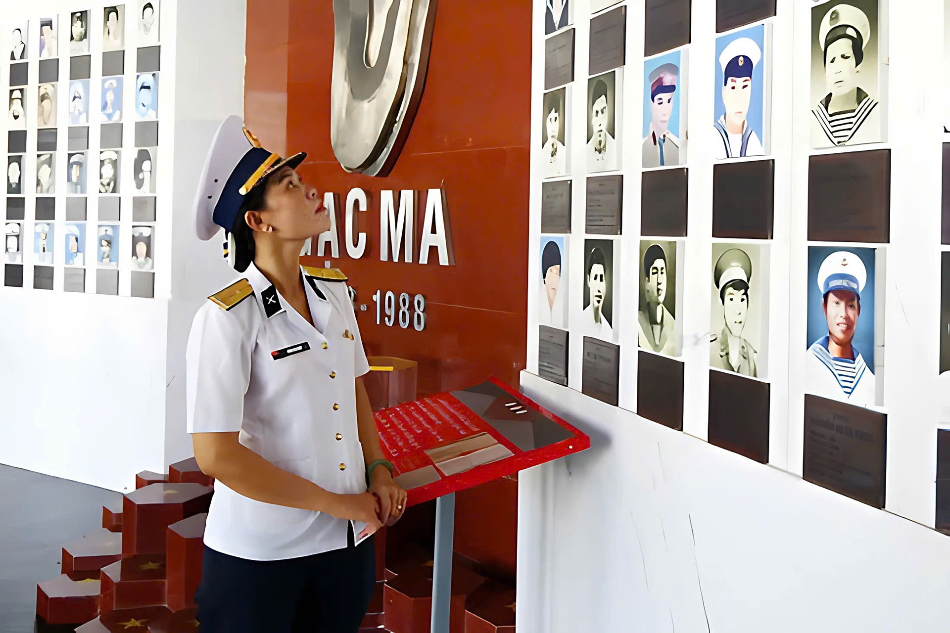 Ngoài ra, nơi đây còn có bảo tàng ngầm diện tích 860m2, với điểm nhấn là khu trưng bày di ảnh, hiện vật của 64 chiến sĩ hy sinh trong trận chiến giữ Gạc Ma. Nhiều kỷ vật như mũ cối, bộ quân phục hải quân bạc màu, đôi dép bộ đội, chiếc radio hay những lá thư viết vội của các anh gửi về gia đình trước ngày lên đường ra đảo.