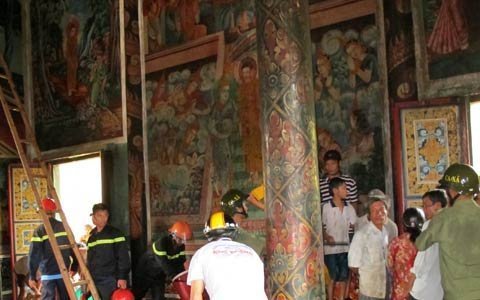 Do chùa được kết cấu xây dựng bằng bê tông nên ngọn lửa chỉ thiêu rụi một số vật