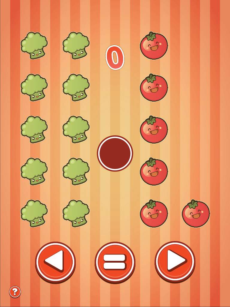 Khi chơi game, rau, củ, quả, sẽ được xếp làm hai bên và nhiệm vụ của người chơi là chọn bên nào nhiều hơn, nếu bên trái nhiều hơn chọn nút bên trái, hay bên phải nhiều hơn sẽ chọn nút phải, còn trường hợp bằng nhau dấu = sẽ là lựa chọn cuối cùng.