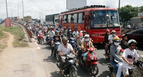 Kẹt xe kéo dài trên cầu Bình Điền