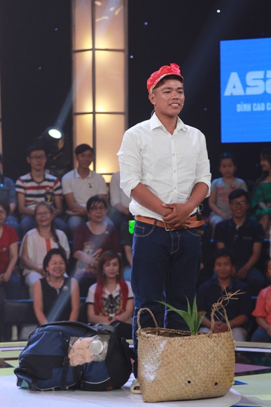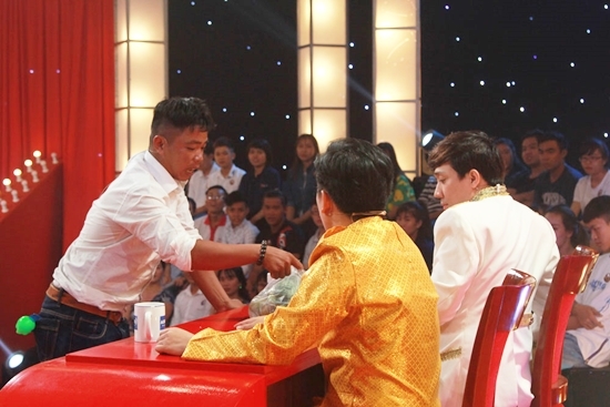 | Nguyễn Thành Tâm muốn chinh phục hai giám khảo để có tiền về quê hỏi cưới bạn gái. |
