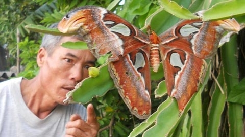 Ông Lê Đình Định người phát hiện con bướm trong vườn cho biết, lúc sáng sớm ngủ dậy thấy một con bướm lạ đậu trên cây thanh long.