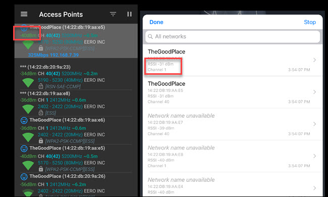 Để do các thông số tín hiệu Wi-Fi trên điện thoại hoặc máy tính bảng, hãy dùng Airport Ultility cho iPhone và iPad và Wifi Analyzer cho Android. Cả hai ứng dụng này đều dễ sử dụng và cung cấp số liệu chính xác cho mọi mạng không dây trong khu vực quét.