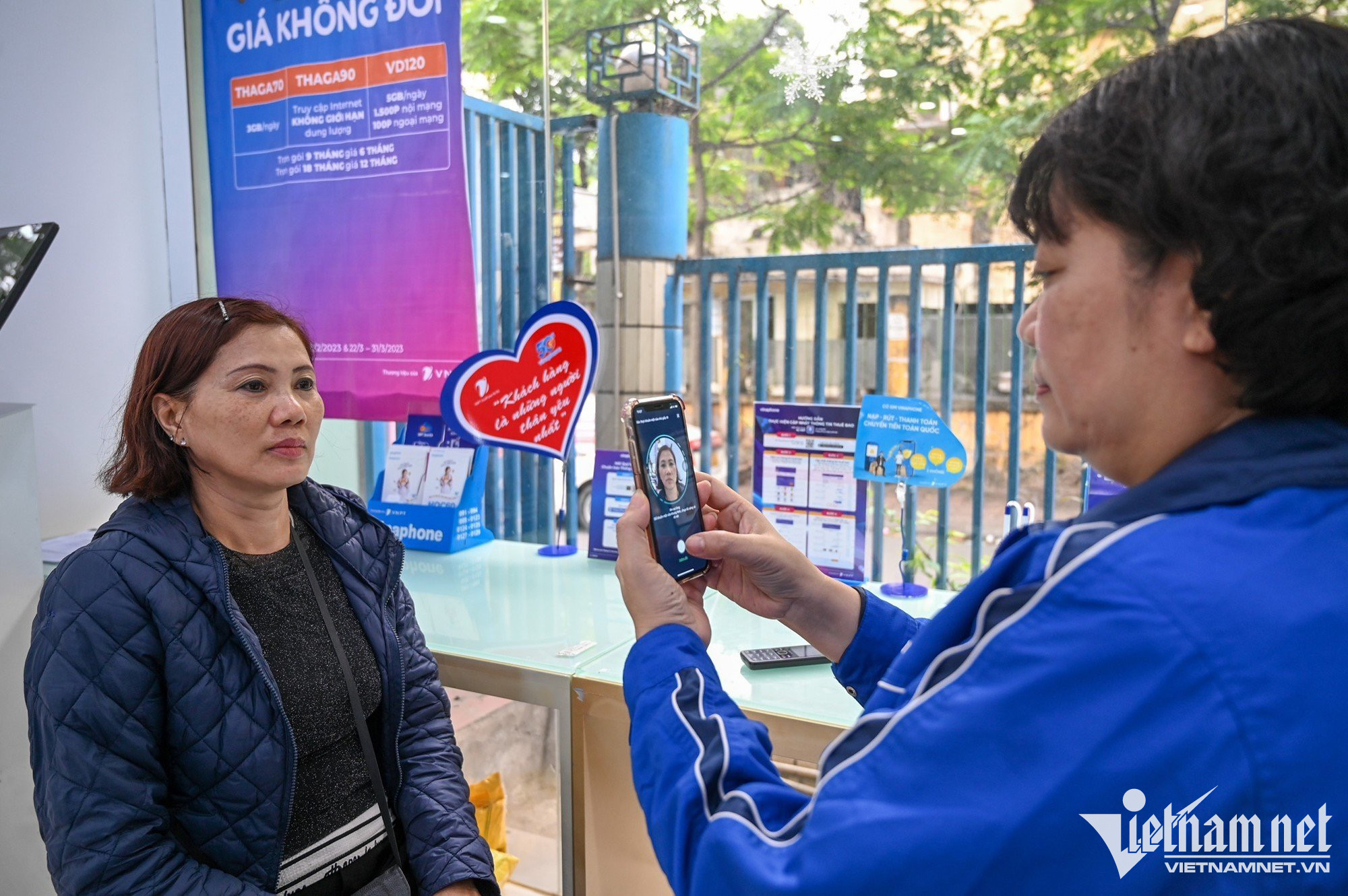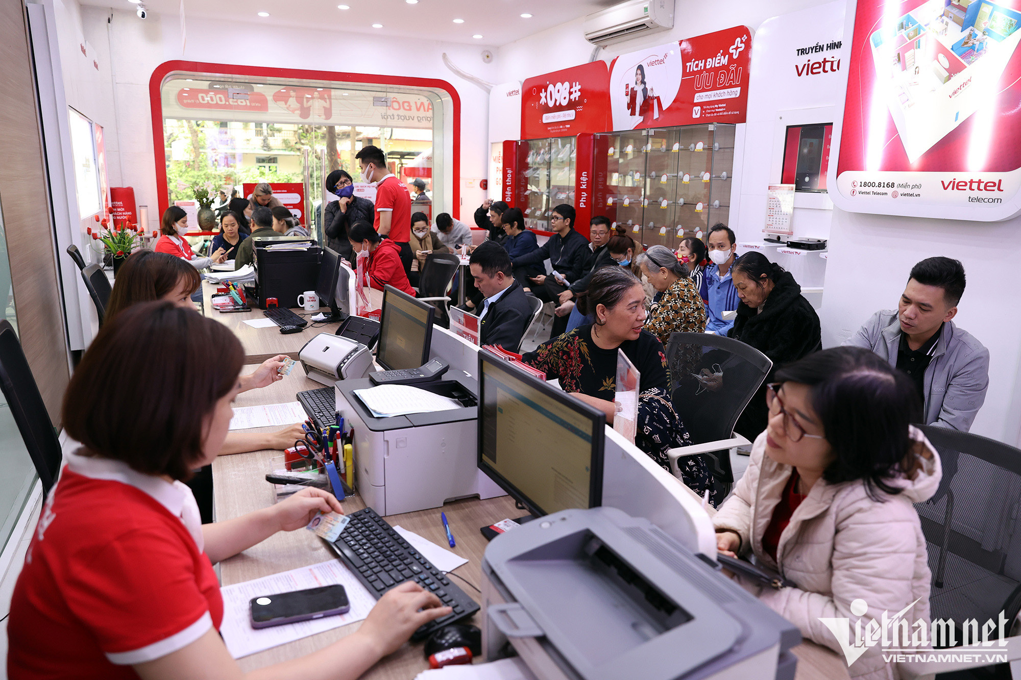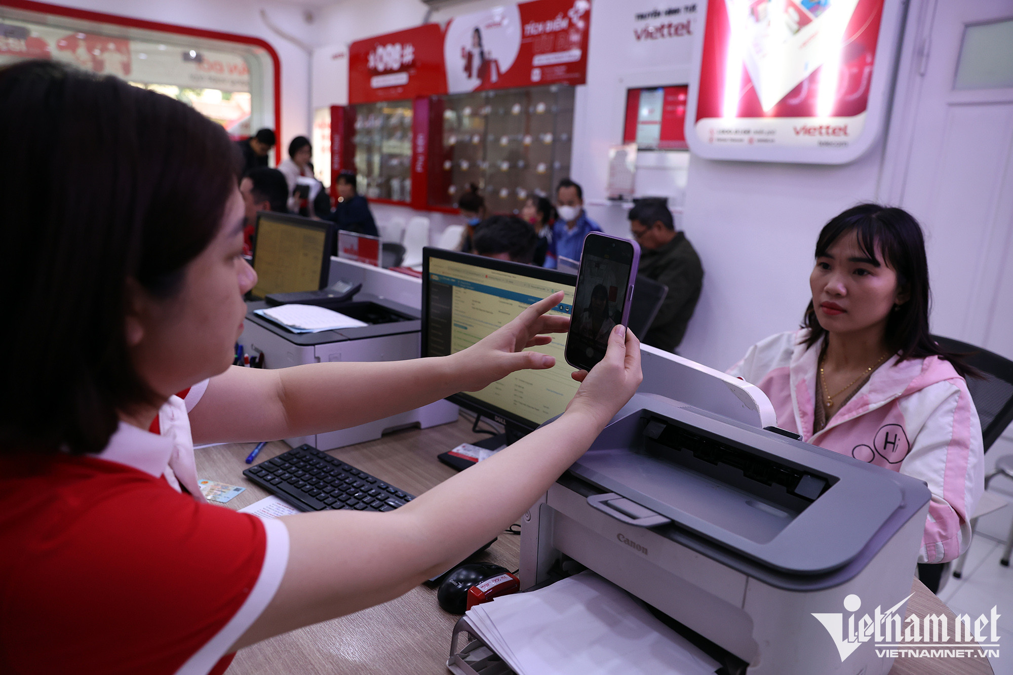 Cửa hàng dịch vụ viễn thông Viettel ở phố Phan Chu Trinh (Hà Nội) phục vụ từ 120 - 150 khách hàng, tăng 4 lần so với bình thường.Chị Phạm Thị Thanh Huyền (quận Hoàn Kiếm) được nhân viên Viettel hướng dẫn các thủ tục để đăng ký chính chủ thuê bao số điện thoại. Chị cho biết, số thuê bao điện thoại của mẹ chị (83 tuổi) nhận được tin nhắn từ nhà mạng yêu cầu đến chuẩn hoá dữ liệu, do đó chị phải mang điện thoại của bà đến đây làm thay. Vì số điện thoại mua ở cửa hàng phân phối ngoài thị trường, chưa đăng ký chính chủ thuê bao sau thời gian dài sử dụng, chị Huyền phải cam kết là chủ sở hữu số điện thoại nói trên mới đủ các thủ tục đứng tên.Sau khi điền đầy đủ các thủ tục, chị Huyền được chụp ảnh lưu hồ sơ. Do mẹ chị tuổi cao, chị quyết định đứng tên chính chủ số thuê bao mà bà cụ 83 tuổi đang sử dụng.Chị Hoàng Thị Dung (quê Thanh Hoá) cho biết, số điện thoại của chị dùng từ năm 2010 đến nay. Sau khi đọc được thông tin trên báo đài về việc thuê bao không chính chủ sẽ bị khoá, chị liền tranh thủ đến làm các thủ tục để được dùng hợp lệ.Bà Nguyễn Thị Tĩnh (quận Hoàn Kiếm) đến cập nhật CCCD gắn chíp mới. Trước đây, số thuê bao của bà đăng ký bằng CMND 9 số. Ngoài chụp ảnh chân dung, người phụ nữ cao tuổi còn được thực hiện ký chữ ký số để lưu hồ sơ.Bà Tĩnh kiểm tra lại thông tin nhà mạng gửi tin nhắn về số điện thoại sau khi chuẩn hoá thông tin thuê bao.Cửa hàng giao dịch Vinaphone tại phố Huỳnh Thúc Kháng (quận Đống Đa) ghi nhận hàng chục người xếp hàng chờ đến lượt làm thủ tục chuẩn hoá thông tin thuê bao theo yêu cầu của Chính phủ. Anh Bùi Vũ Anh (quận Đống Đa) sau khi nhận được thông báo chuyển hoá thông tin mới kiểm tra thông tin cá nhân trên ứng dụng, nhưng bất ngờ hiện ra thông tin người khác là chủ số sim điện thoại. Tại cửa hàng giao dịch cũng xuất hiện nhiều trường hợp giống anh Vũ Anh do mua sim trôi nổi bên ngoài thị trường. “Ban đầu khá lo lắng vì thấy đây không phải thuê bao chính chủ của mình sợ ảnh hưởng đến thông tin cá nhân nên tôi phải đến nhà mạng để làm lại luôn”, anh nói.Người dân phải trải qua đầy đủ các quy trình cơ bản của việc chuẩn hoá thông tin như kê khai thông tin, chụp ảnh căn cước và ảnh cá nhân. Sau khi nghe thông tin nếu không chuẩn hoá thông tin sẽ có nguy cơ bị khoá thuê bao, anh Phan Văn Đức (21 tuổi) sắp xếp thời gian đến để làm lại tới 5 số điện thoại. “Cũng không phức tạp lắm chỉ mất thời gian chờ đợi. Tôi mất khoảng 30 phút để hoàn thành thủ tục”, anh chia sẻ. Không chỉ chuẩn hoá thông tin để trùng khớp với cơ sở dữ liệu quốc gia, người dân còn được hỗ trợ đổi phôi sim theo thông tin cá nhân ban đầu.“Để tránh thời gian đợi chờ, 11h tôi mới bắt đầu đi làm, lúc này đỡ đông hơn. Thủ tục khá nhanh gọn chỉ mất khoảng 1-2 phút nhưng hơi bất tiện, do phải chụp ảnh cá nhân và căn cước tôi đã không thể làm thủ tục hộ người thân”, chị Lan chia sẻ. Đến nay, đã có 1,63 triệu thuê bao thực hiện chuẩn hóa thông tin để trùng khớp với Cơ sở dữ liệu quốc gia về dân cư, chiếm 42,4% tổng số thuê bao mà các doanh nghiệp đã xác định. Để đẩy nhanh tiến độ, một số nhà mạng đã tăng cường nhân sự tại các điểm giao dịch, đồng thời kéo dài thời gian làm việc tới 21h hàng ngày để phục vụ khách hàng.