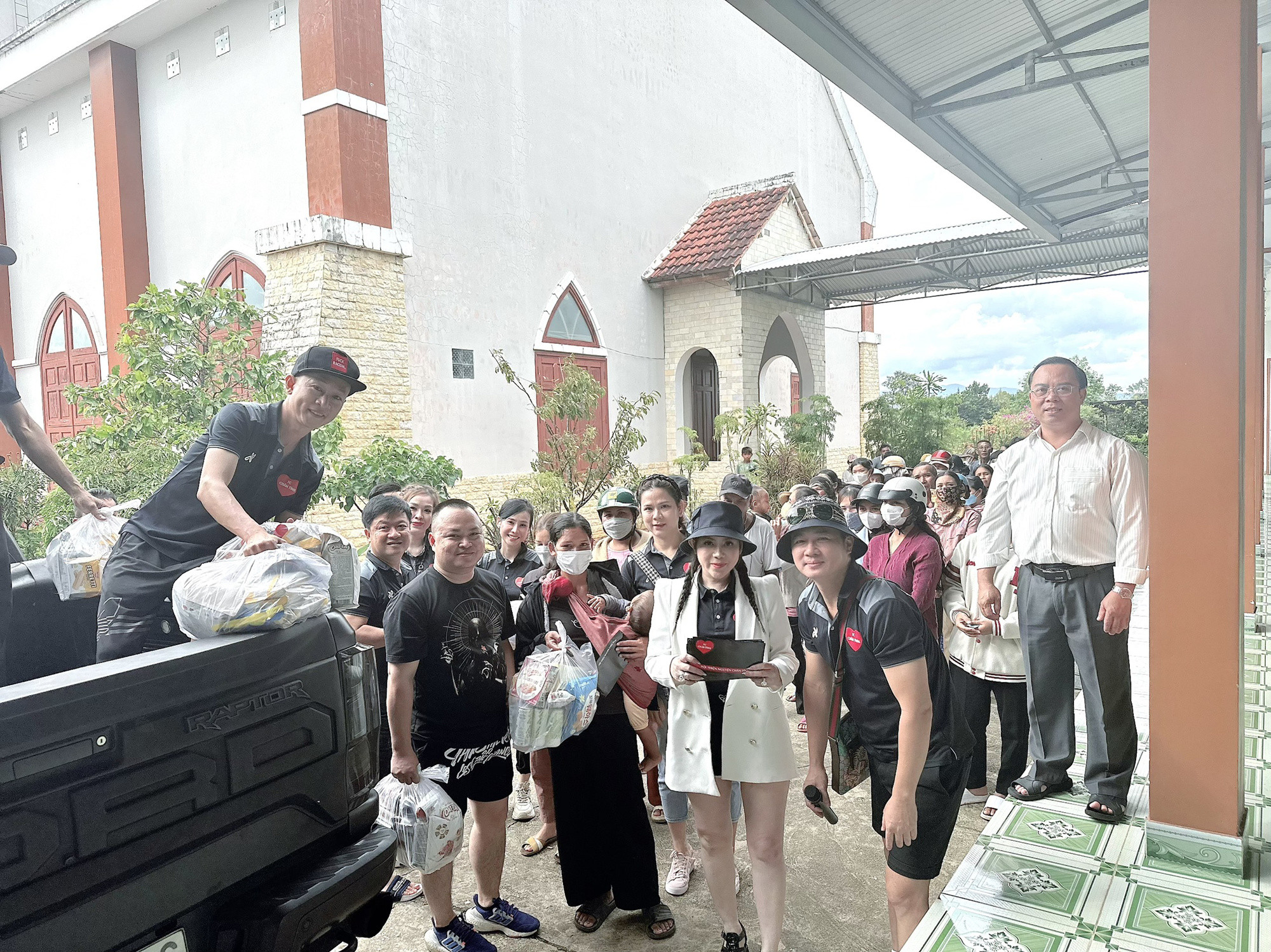Ca sĩ Lâm Vũ mặc giản dị buổi trao quà từ thiện.