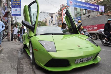 Siêu xe Lamborghini Murcielago LP640 màu "độc" này thuộc đời 2009, cập cảng Đà Nẵng vào cuối tháng 11/2010 sau hành trình từ Mỹ sang Hồng Kông bằng đường hàng không, rồi về Việt Nam bằng đường biển.
