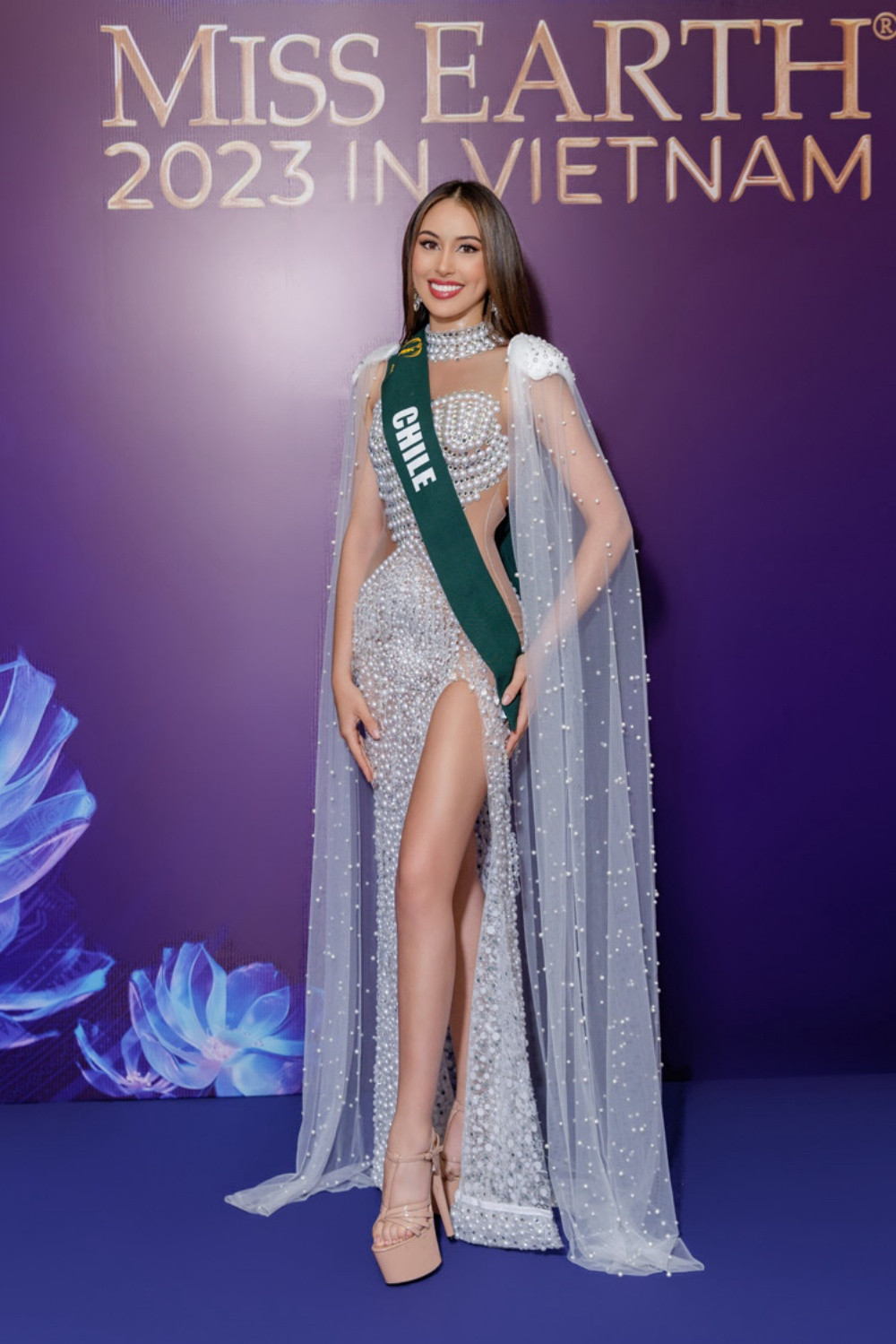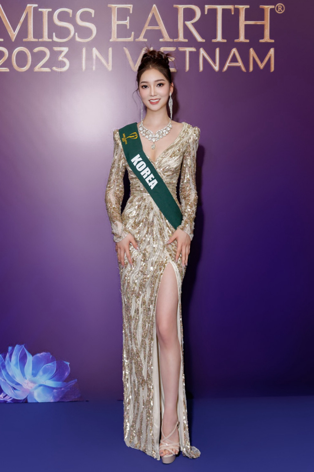 Hoa hậu Nhật Bản Kirari Oshiro thanh lịch với đầm ôm sát tông vàng gold và hoa tai dáng dài cùng màu. Đại diện Hàn Quốc Jang Da-yeon trong trẻo trong chiếc đầm chất liệu nylon xẻ cao, nổi bật là chiếc vòng cổ và hoa tai bạc lấp lánh. Hoa hậu Chile - Ximena Huala hoá nàng công chúa với mái tóc ép thẳng, suôn dài, đầm dạ hội trong suốt để lộ lưng trần gợi cảm cùng áo choàng voan dài.