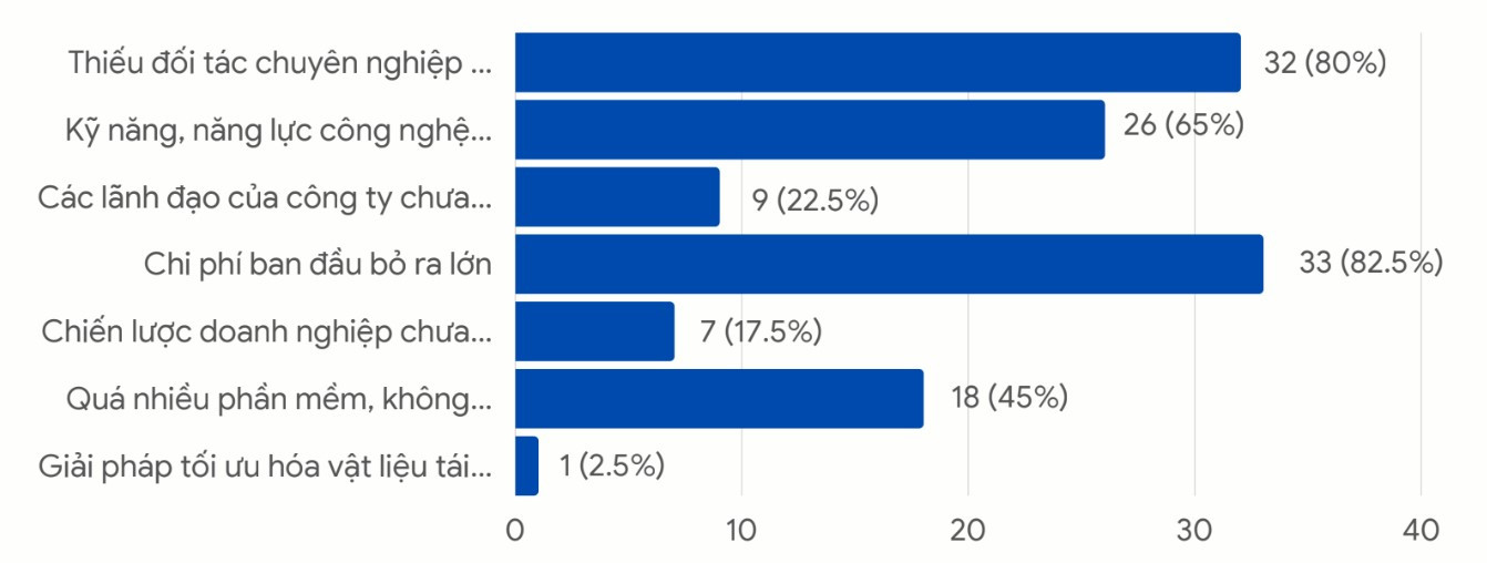 Lý giải cho điều này có 3 lý do. Đó là chi phí ban đầu bỏ ra lớn, năng lực công nghệ và đội ngũ nhân sự chưa đáp ứng được chuyển đổi số, các doanh nghiệp cũng thiếu đối tác chuyên nghiệp, có năng lực tư vấn và giải pháp tốt.
