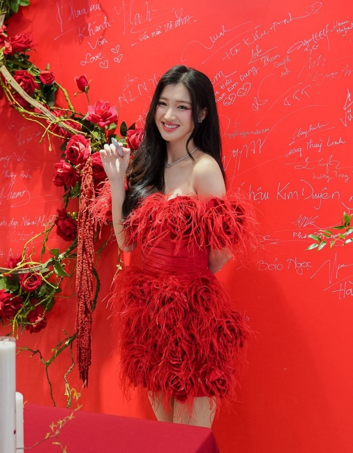 Lan Khuê khoe vóc dáng mảnh mai trong chiếc đầm sequin màu xanh ôm sát cơ thể. Thiết kế với phần cổ yếm, dây mảnh tôn bờ vai thon cùng đường cut-out tại eo giúp tổng thể thanh thoát.Bảo Ngọc kiêu sa trong thiết kế dạ hội cúp ngực lộ xương quai xanh gợi cảm. Phần thân trên gồm những đường gân đính đá tạo hình rẻ quạt, thân dưới được đính thêm chiếc nơ lớn tạo điểm nhấn cho trang phục.Người đẹp Huỳnh Thuý Vi duyên dáng trong chiếc đầm tua rua màu vàng bắt mắt với phần cổ chữ V xẻ sâu và điểm cut-out tôn lên vòng eo thon. Cô chọn kiểu tóc búi cao, trang điểm theo tone cam và kết hợp bông tai đính đá làm phụ kiện duy nhất.Ninh Dương Lan Ngọc tạo dáng với váy body màu đỏ tôn đôi chân thon dài. Thiết kế được làm từ chất liệu voan, tay dài nữ tính có thể kéo lên – hạ xuống linh hoạt. Với màu sắc trang phục rực rỡ, nữ diễn viên trang điểm nhẹ nhàng và để tóc thẳng đơn giản.Hà Nhi chọn xanh dương làm gam màu chủ đạo với thiết kế lệch vai được xếp lớp voan theo tầng cầu kỳ, cùng phần eo chiết được đan dây lạ mắt. Nữ ca sĩ phối cùng phụ kiện tóc tone-sur-tone để có diện mạo ấn tượng.Á hậu Ngọc Hằng kiêu kỳ trong chiếc đầm màu bạc đính đá tôn dáng với các điểm xẻ sâu hút mắt. Người đẹp chọn kiểu tóc xoăn nhẹ nhàng và layout trẻ trung.Đoàn Thiên Ân hoá nàng thơ với thiết kế màu hồng cúp ngực. Lối trang điểm theo tone hồng nude cùng mái tóc bồng bềnh mang đến diện mạo ngọt ngào, trong trẻo.Khả Như gợi cảm khi diện váy đen ánh nhũ được cắt xẻ khá táo bạo. Nữ diễn viên trang điểm đồng điệu với màu tóc cam nổi bật.Mai Phương thần thái với thiết kế màu xanh đậm và thu hút mọi ánh nhìn với vòng eo nhỏ nhắn nhờ chiếc áo crop-top đính lông điệu đà được phối cùng chân váy công chúa. Phương Nhi rạng rỡ trong chiếc váy cocktail chiết eo màu đỏ tươi được đính kết từ các bông hồng cỡ lớn. Nàng á hậu phối cùng trang sức dáng mảnh để hoàn thiện outfit của mình.