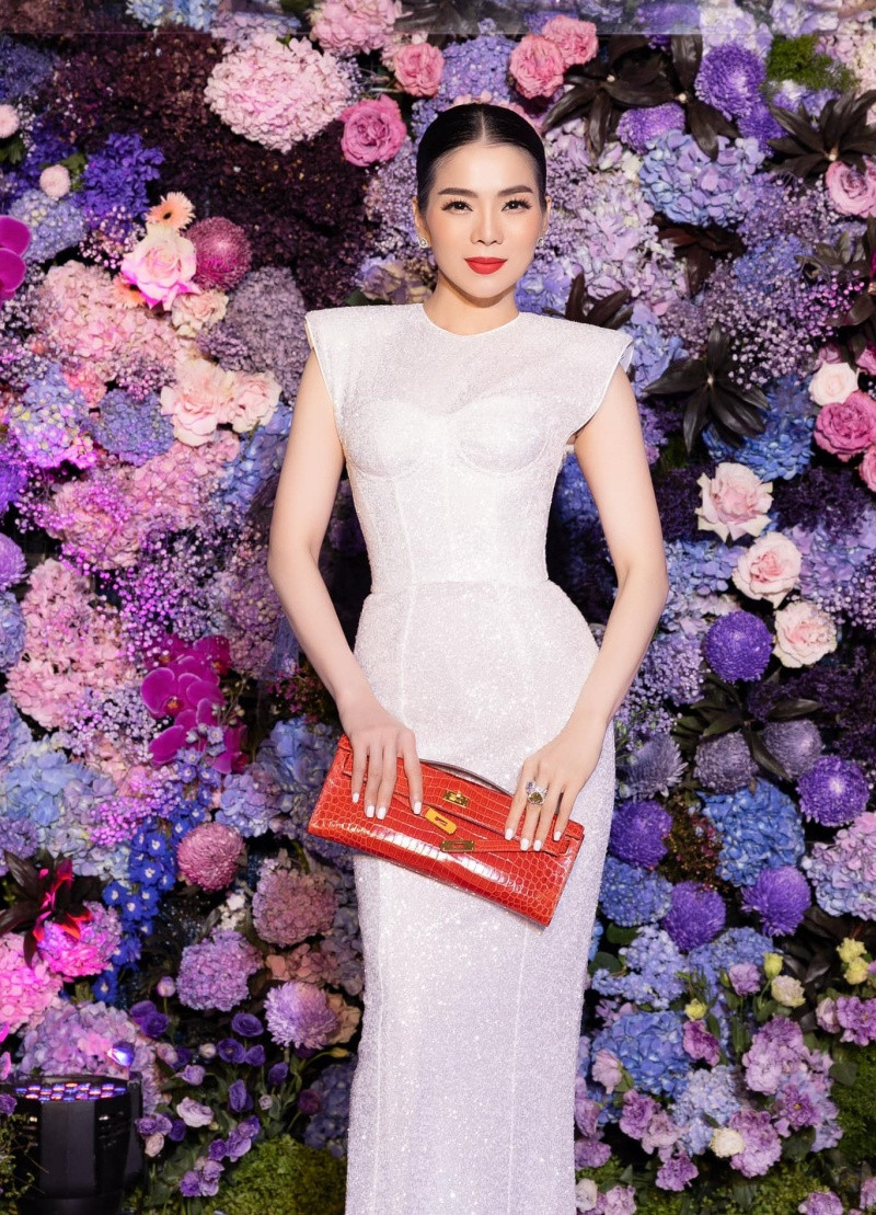 Lan Khuê khác lạ với mái tóc đỏ xù và chiếc váy màu hồng ngọc trai mang hoạ tiết đính kết. Cô kết hợp cùng tất ren màu đen và giày cao gót màu đỏ để hoàn thiện outfit của mình.Lệ Quyên sang trọng với thiết kế sequin màu trắng, dáng dài, cúp ngực và corset tại eo giúp tôn dáng. Nữ ca sĩ kết hợp cùng túi da hàng hiệu cùng layout makeup nhấn vào mắt và môi.H'Hen Niê tỏa sáng với đầm trắng dáng xoè, cổ cao làm từ vải bóng dập ly. Phần cầu vai nhọn quyền lực cùng phần đai to bản giúp khoe khéo vòng eo thon.Thiên Ân chọn chiếc váy màu xanh sapphire được đính đá và cườm lấp lánh. Thiết kế dài tay có phần vai độn vuông vức cùng kiểu dáng ngắn, tà dài bên hông phù hợp với vóc dáng.Bảo Ngọc táo bạo khi diện trang phục ren xuyên thấu ôm sát cơ thể cùng phần cổ xẻ sâu. Nàng hậu Gen Z phối cùng găng tay lưới đồng màu, kết hợp với phụ kiện đính đá cùng lối trang điểm sắc sảo và có phần già dặn.Puka khoe làn da không tì vết trong thiết kế màu đen được làm từ chất liệu ren phối lưới kết hợp hiệu ứng thả tua rua. Thiết kế cầu kỳ của nữ diễn viên có điểm nhấn là phần thêu nổi hình chim hạc quanh cổ và vai.Minh Triệu kiêu kỳ với thiết kế cổ yếm màu hồng cánh sen - gam màu khá kén người mặc. Bên cạnh hoạ tiết đính đá, phần thân dưới được nhà thiết kế đính lông vũ toàn bộ giúp nữ siêu mẫu càng thêm cuốn hút. Với cùng thiết kế gắn lông vũ trendy, Bảo Thy điệu đà trong chiếc đầm trắng trễ vai, xẻ tà giúp khoe khéo làn da trắng và thân hình thon gọn. Nữ ca sĩ chọn kiểu tóc búi cao hiện đại, kết hợp cùng trang sức tone-sur-tone với trang phục.Hoàng Phương kiêu sa với thiết kế màu đỏ đậm chất thu đông. Chiếc áo cổ cao đơn giản được kết hợp cùng phần chân váy xếp lớp tua rua vừa mang lại vẻ thanh lịch, vừa gia tăng sự thu hút cho người mặc.MC Thanh Mai khoe vóc dáng thanh mảnh trong thiết kế cúp ngực ôm sát cùng phần tà xẻ nhẹ nhàng. Cô chọn dây chuyền màu xanh lục làm điểm nhấn, phối cùng túi xách tone-sur-tone.Kim Thư trong chiếc đầm lệch vai, đính đá màu lavender cùng phần tà dài mang lại vẻ thướt tha. Nữ diễn viên chọn kiểu tóc xoăn dài, makeup trong trẻo tạo nên diện mạo trẻ trung.