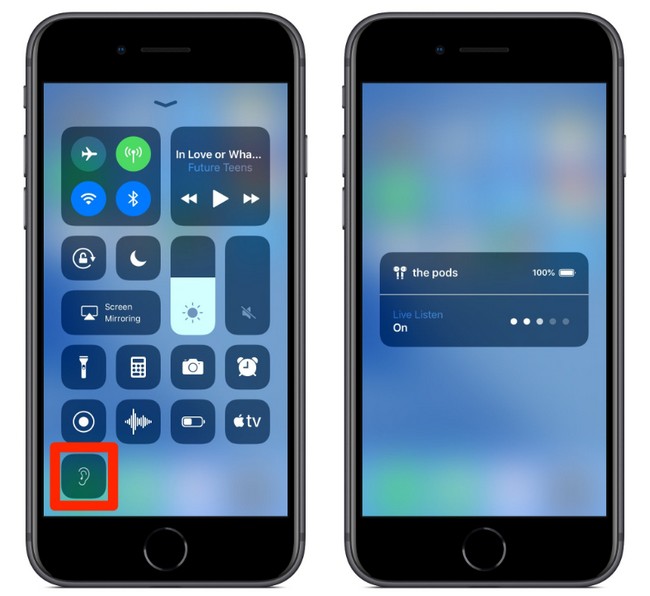 Đầu tiên bạn cần bật tính năng theo trình tự sau: Setting > Control Center > Customize Controls > Turn on Hearing.