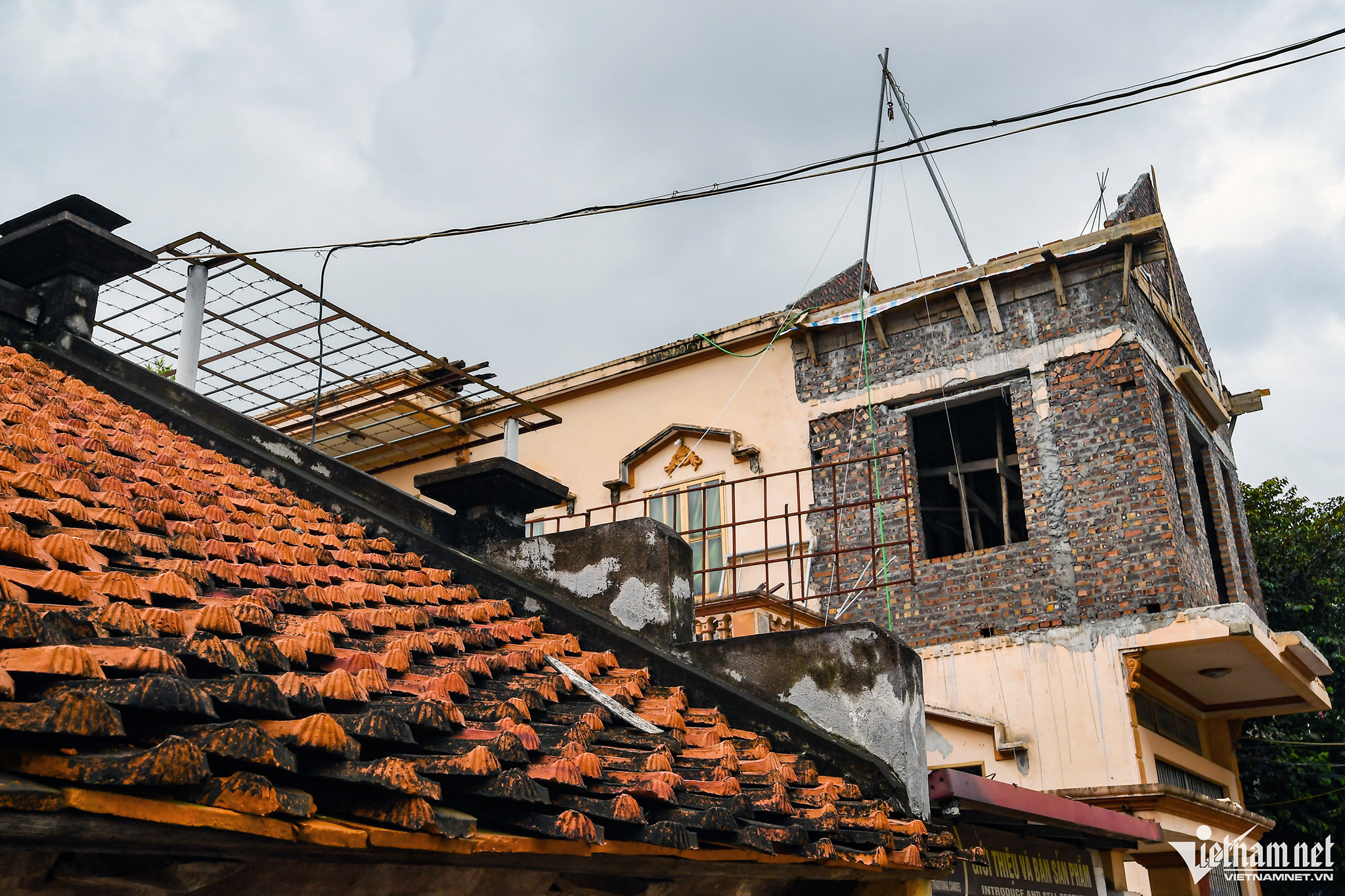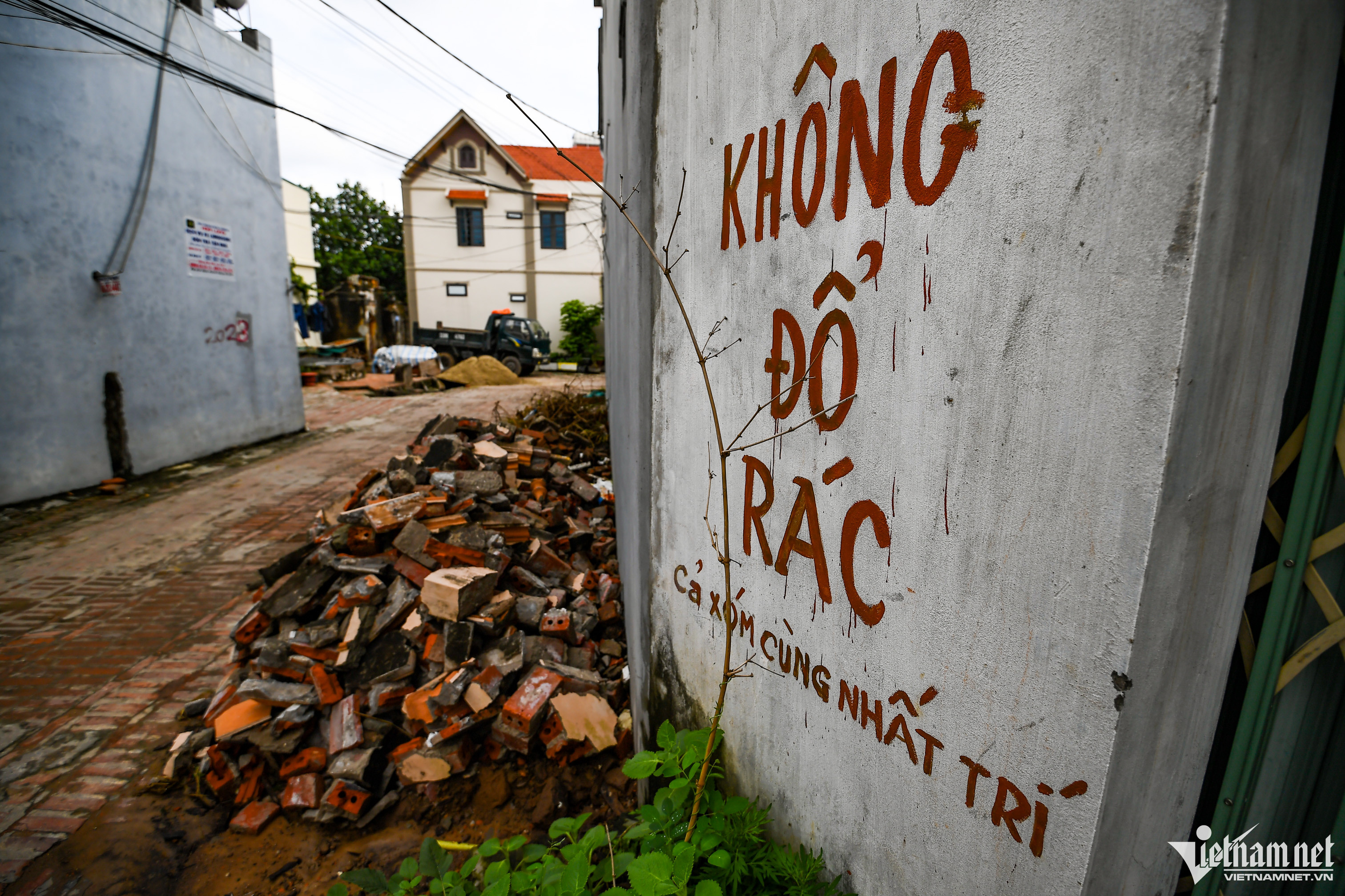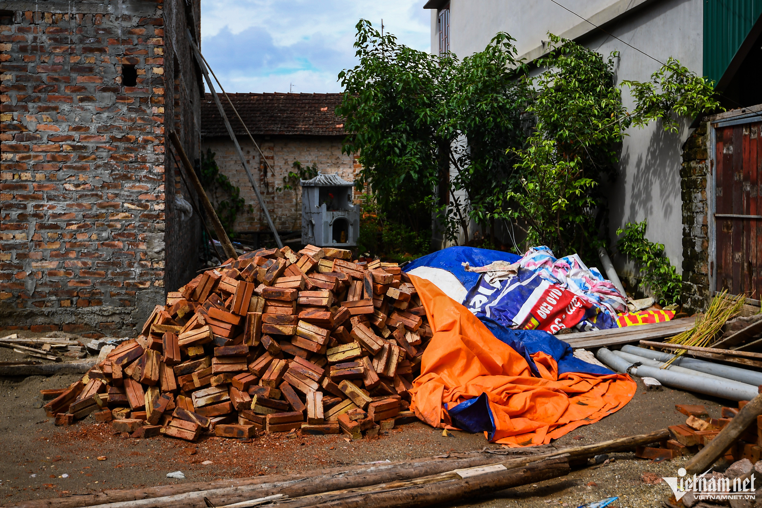 Vật liệu xây dựng ngổn ngang giữa lòng đường ngôi làng cổ.