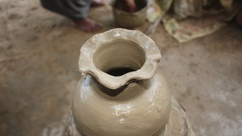 Một sản phẩm hoàn thành trong vòng 5 phút, nhưng người thợ phải xoay quanh cục đất sét hàng trăm vòng.