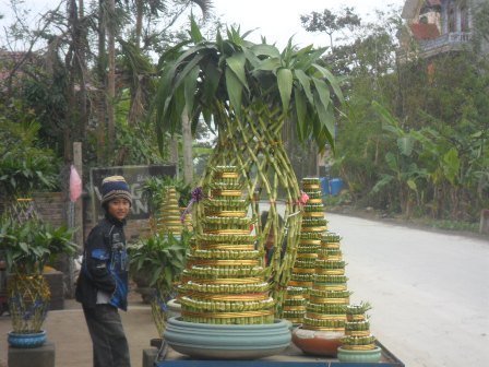 Dọc theo quốc lộ 39 đến Đông Hưng, Thái Bình không khí xuân tràn ngập, dường như cái tết đã đến sớm hơn với làng “phát lộc”. Trên khắp cánh đồng, dọc đường quốc lộ đều là cây phát lộc với đủ kích cỡ. Loại nhỏ thì 2-3 tầng, loại lớn 9-10 tầng. Chưa kể đến “lục bình phát lộc” và các loại cây bán lẻ để người mua tự trang trí.