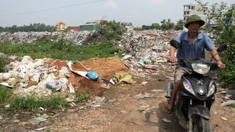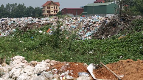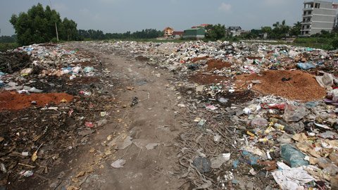 Đống chất thải “nuốt” dần ruộng lúa mỗi ngày.
