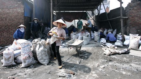Làng Mẫn Xá lúc nào cũng đặc quánh khói bụi tỏa ra từ hàng trăm lò cô đúc nhôm.